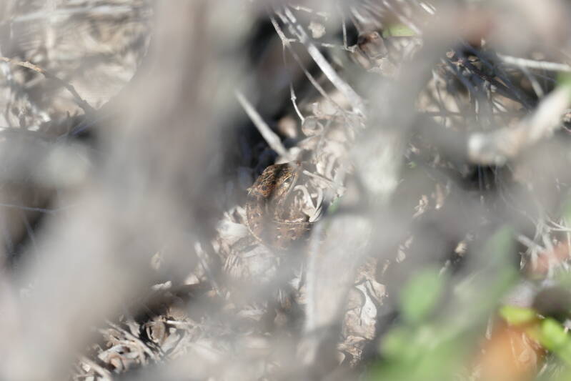 At the outer edge of Matalascañas we flipped a lot of material at an abandoned camping site. This delivered a Iberian Worm Lizard (Blanus cinereus), Natterjack Toad (Epidalea calamita), Moorish Gecko and False Smooth Snake (Macroprotodon brevis). Flipping seemed to be quite rewarding in this area. Even though the lack of sunrays wasn’t in our favour, we still tried to find Carbonell’s Wall Lizard at a boardwalk nearby. Unfortunately, it didn’t result in anything. On our way back we found some more Moorish Geckos, another Natterjack Toad and Perez’ Water Frog. We drove back in the direction of El Rocio but had some difficulties finding some other locations for herping. Eventually, we chose to walk a bit around the Centro de Visitantes La Rocina. Only some nests from Eurasian Penduline Tit (Remiz pendulinus), an Iberian Grey Shrike (Lanius meridionalis) and a Common Pochard (Aythya farina) were new to our list. We felt it was dinner time but all restaurants had a closed kitchen until 20.00. Instead, we went to the supermarket and bought some bread and other food. From El Rocio we drove slightly to the north and searched a bit for potentially good ponds for amphibians. The ponds we found didn’t appear very promising to us so we returned to El Rocio. When we came back it was close to 20.00, dinner time for Spain, so we went to a restaurant to have a second dinner, some compensation for the first night in Portugal. After this delicious seafood meal we were full of energy to search for Iberian Parsley Frog for the second time. When we arrived at the marshland next to El Rocio, we heard them calling again. But again, impossible to find. After a long time, we were able to pinpoint the locations of two calling males in one pond. We were unsuccessful with our dipping net but after a while we found out why: the frog was calling hidden in some Common Rush. With some good cooperation we managed to pinpoint and finally find one of the frogs. We also found some proof of breeding success of some other species: larvae of Hyla meridionalis and Discoglossus galganoi and larvae and eggs of Pelobates cultripes. With Iberian Parsley Frog added to our list we could go back to our hotel satisfied, just after midnight.